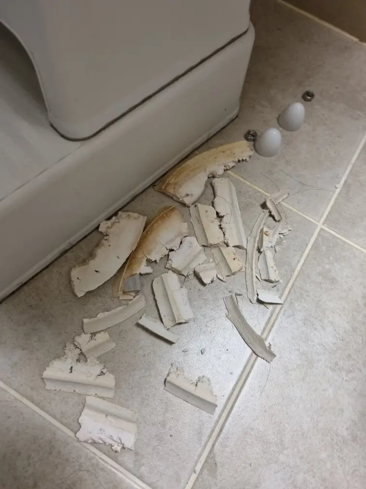 변기는 바닥에 앵커볼트로 고정하고 그 주변을 백시멘트로 마감합니다. 오랜 시간이 지나면 백시멘트가 갈라지고 부서지면서 고정력이 약해집니다. 특히 화장실 바닥이 자주 젖는 환경에서는 시멘트가 더 빨리 풍화됩니다.